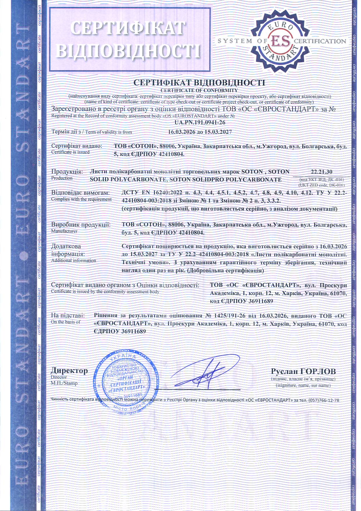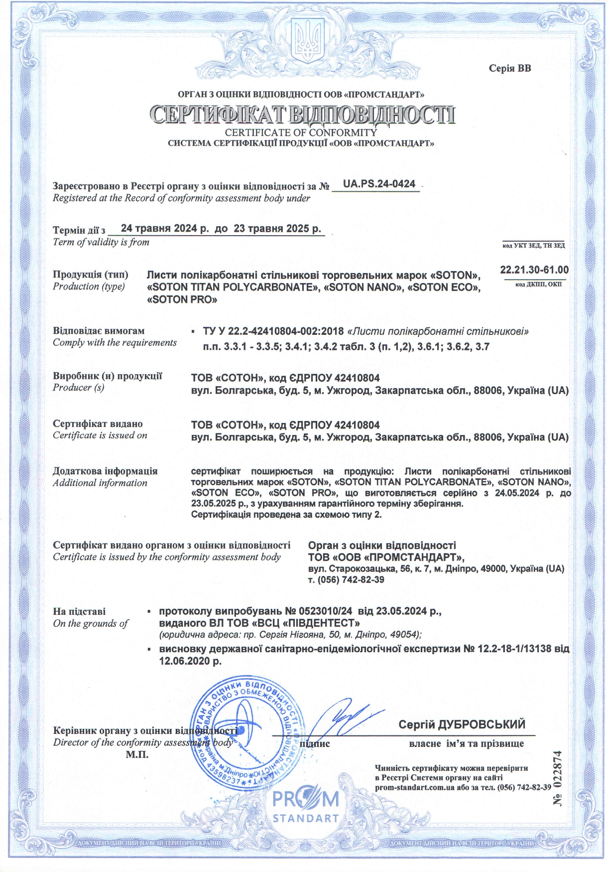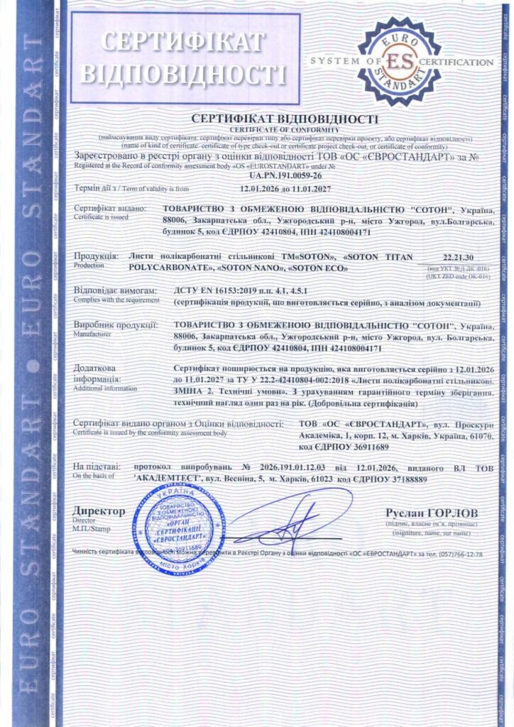 ВИСНОВОК державної санітарно-епідеміологічної експертизи про листи полікарбонатні стільникові (завантажити в PDF – СЕЗ стільникові 2020)